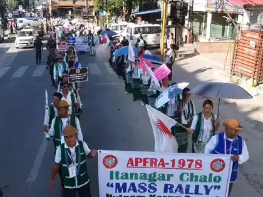 अरुणाचल प्रदेश के 27 जिलों, 26 प्रमुख जनजातियों और 100 उप-जनजातियों का प्रतिनिधित्व करने वाले हजारों मूल निवासियों ने धर्मांतरण विरोधी अधिनियम (APFRA 1978) को लागू करने की माँग को लेकर रैली निकाली। शनिवार (20 अक्टूबर 2025) को पारंपरिक कपड़ों में इन लोगों ने ईटानगर तक मार्च किया। राज्य के ईसाई इसका कड़ा विरोध कर रहे हैं।