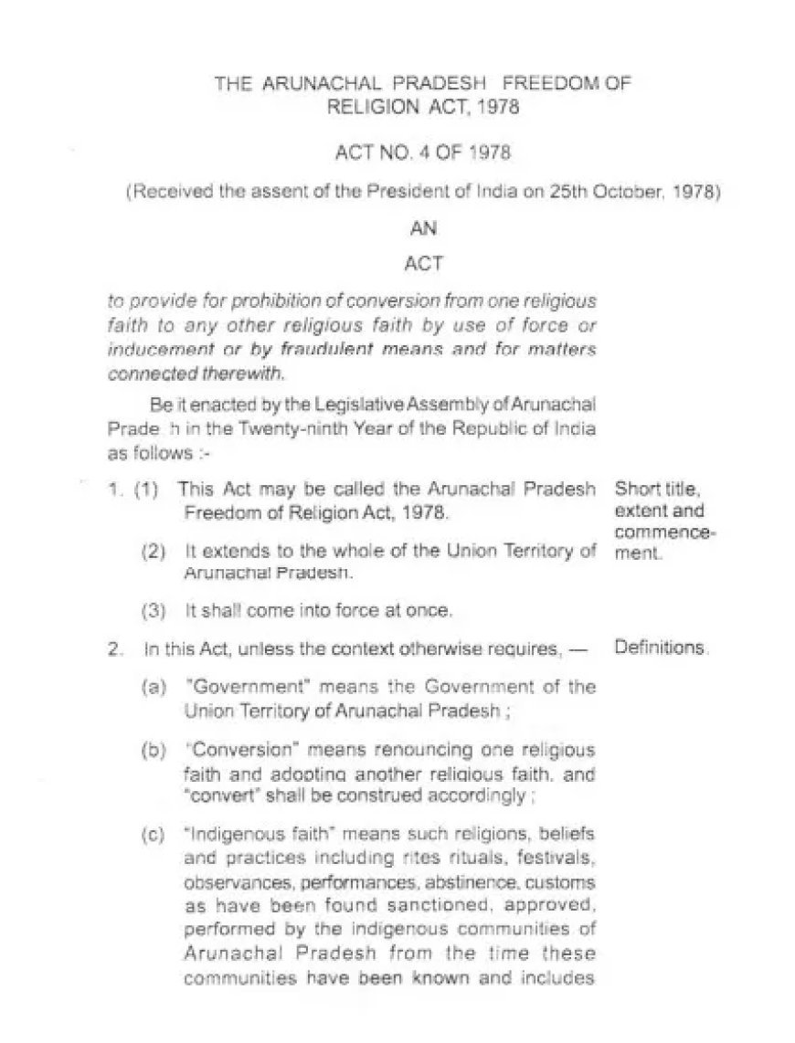 अरुणाचल प्रदेश धर्म स्वतंत्रता अधिनियम क्या है?